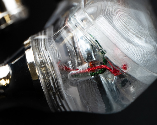 透明なアクリル製ハウジングは、軽量かつロープロファイル設計。耳に自然にフィットし、長時間でも快適な装着感を実現します。