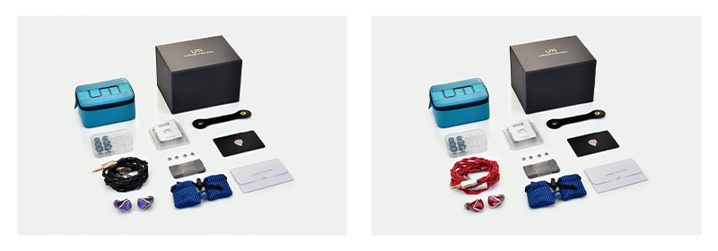 | 付属品 | レザーケース メッシュバッグ ×2 Black Cable Clip Silicone Ear tips(各S, M, L) AZLA SednaEarfit Xelastec(各SS, MS, M) UM Blue-Core tips(各S, M, L) 交換型金属フィルター ×4 クリーニングクロス 保証書 |